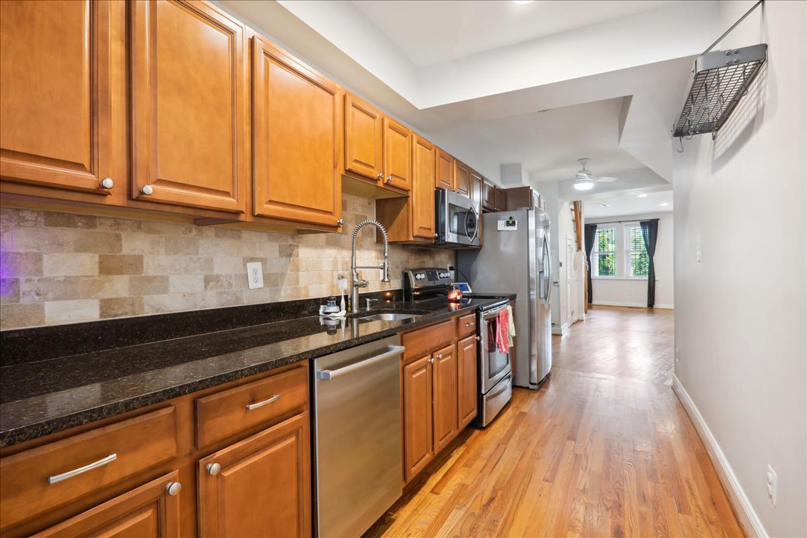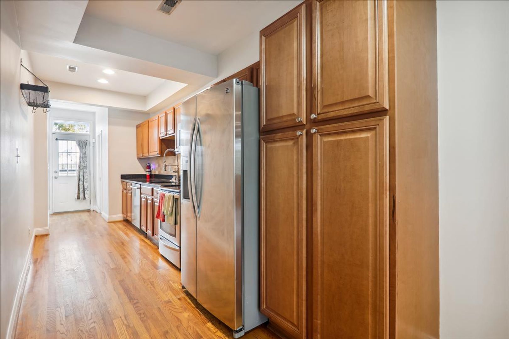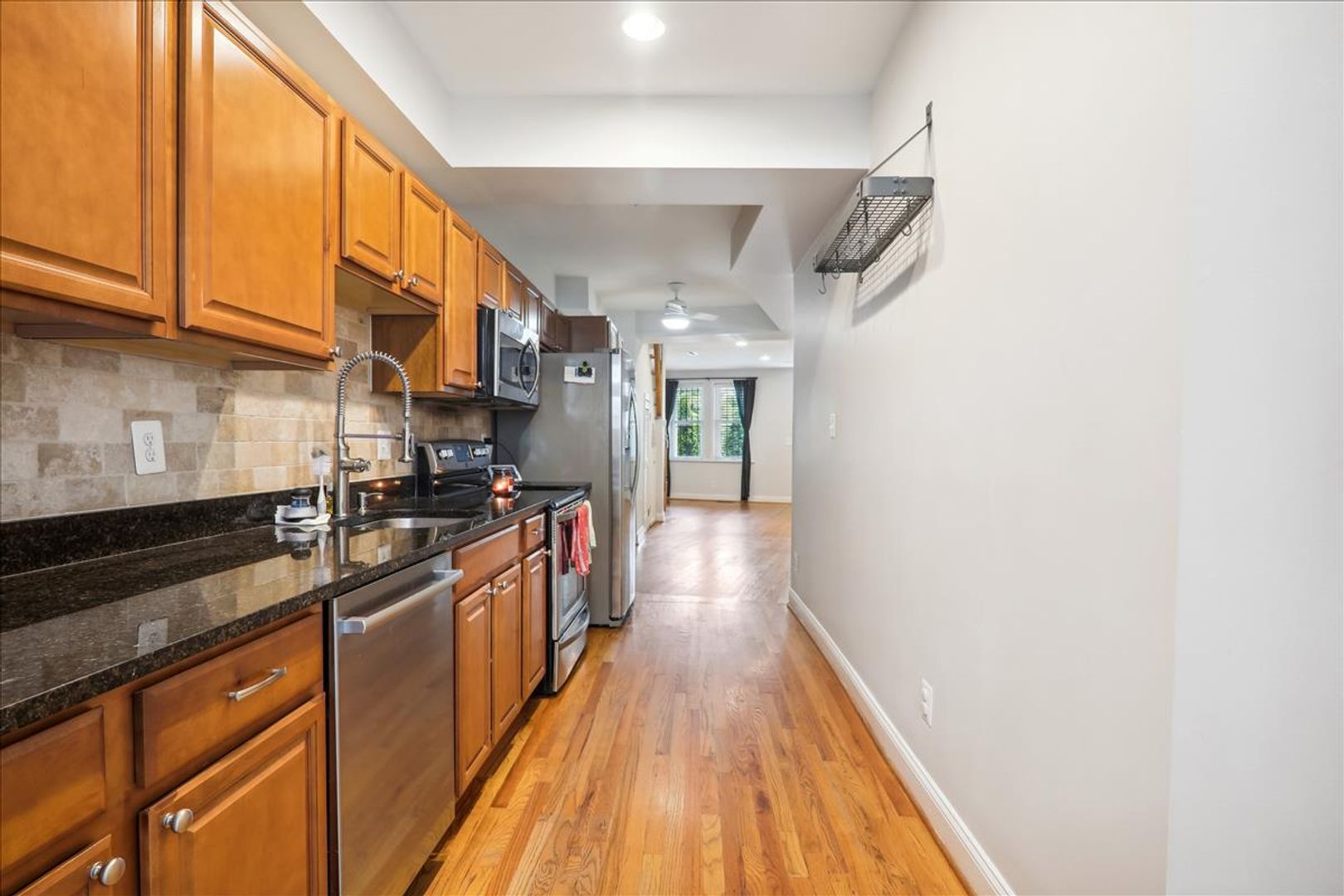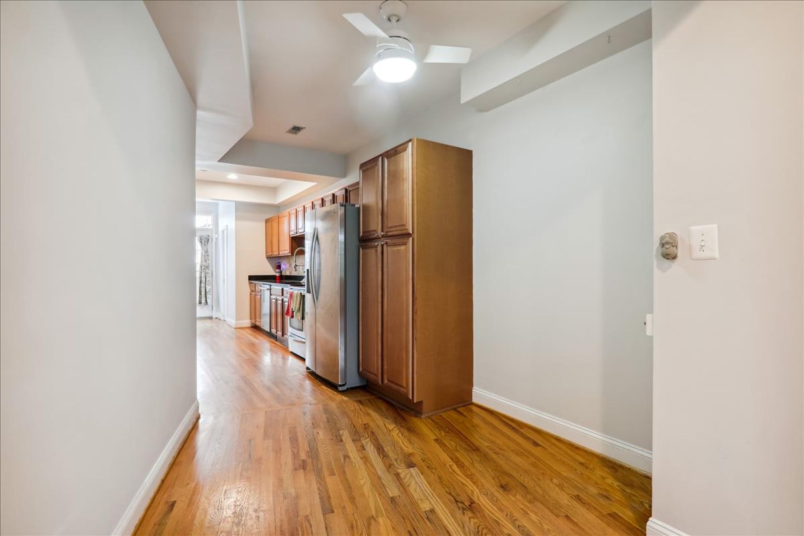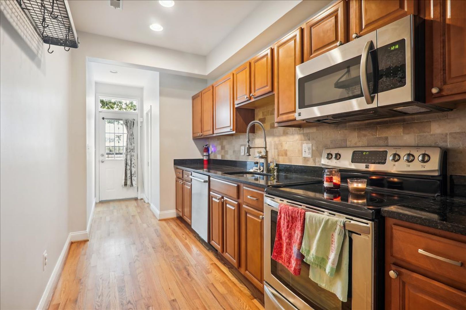 2 bedroom, 1.5 bath END UNIT Row house just one block off the H St Corridor. This charming two-level 1,254 sqft Home Beautiful Updates, such as stainless steel appliances, Granite Countertops, Complimentary Backsplash PLUS hardwood floors on both Levels, recessed lighting and a main level 1/2 bath, 2 Upper level light-filled bedrooms one with Built in Shelving!, Updated Bathrooms Full Bath has a skylight and Jacuzzi Style Tub, Stacked Full Size W&D on Bedroom level, Front Porch, Rear yard has a privately fenced backyard with 2 car tandem parking! Close to Union Market, Whole Foods, and all things DC! …….shopping, restaurants, fitness facilities, public transportation, and entertainment are waiting for you right outside your door!— DC Living at its Best.—