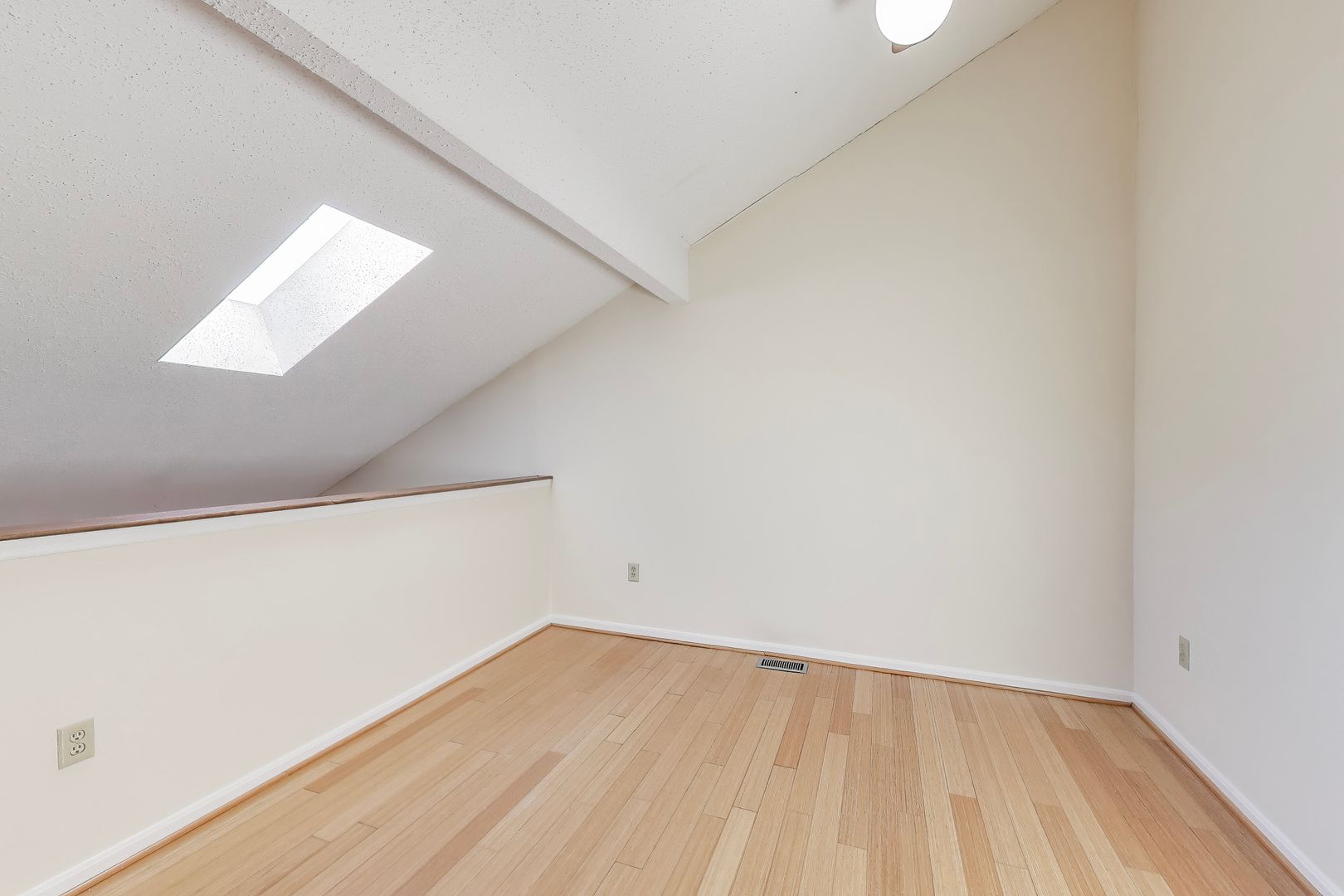 Top Floor 1 bed w/ a loft [ can be a 2nd BEDROOM] plus 1.5 Baths and SECURE GARAGE SPACE — ——-Top Floor 1 bedroom with loft /1.5 2 level Condo w/ Garage parking. HUGE 1 CAR GARAGE!! Super “chic” sun filled, top floor walk up unit – large windows and skylights!! Hardwood flooring in living areas, ceramic tile in kitchen and bathrooms, Silestone Countertops, Energy Efficient Washer & Dryer in unit, walk-in closet, vaulted ceilings, good storage. Close to DC, Ft. Meade, NSA, FDA, ICC. Backs to trees, easy access to public transportation.
