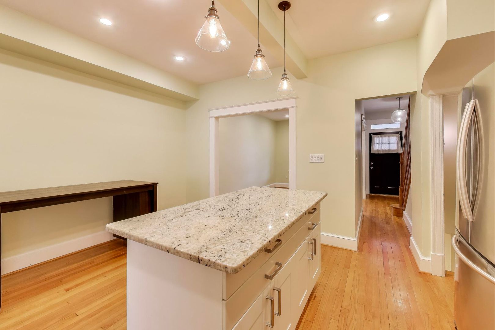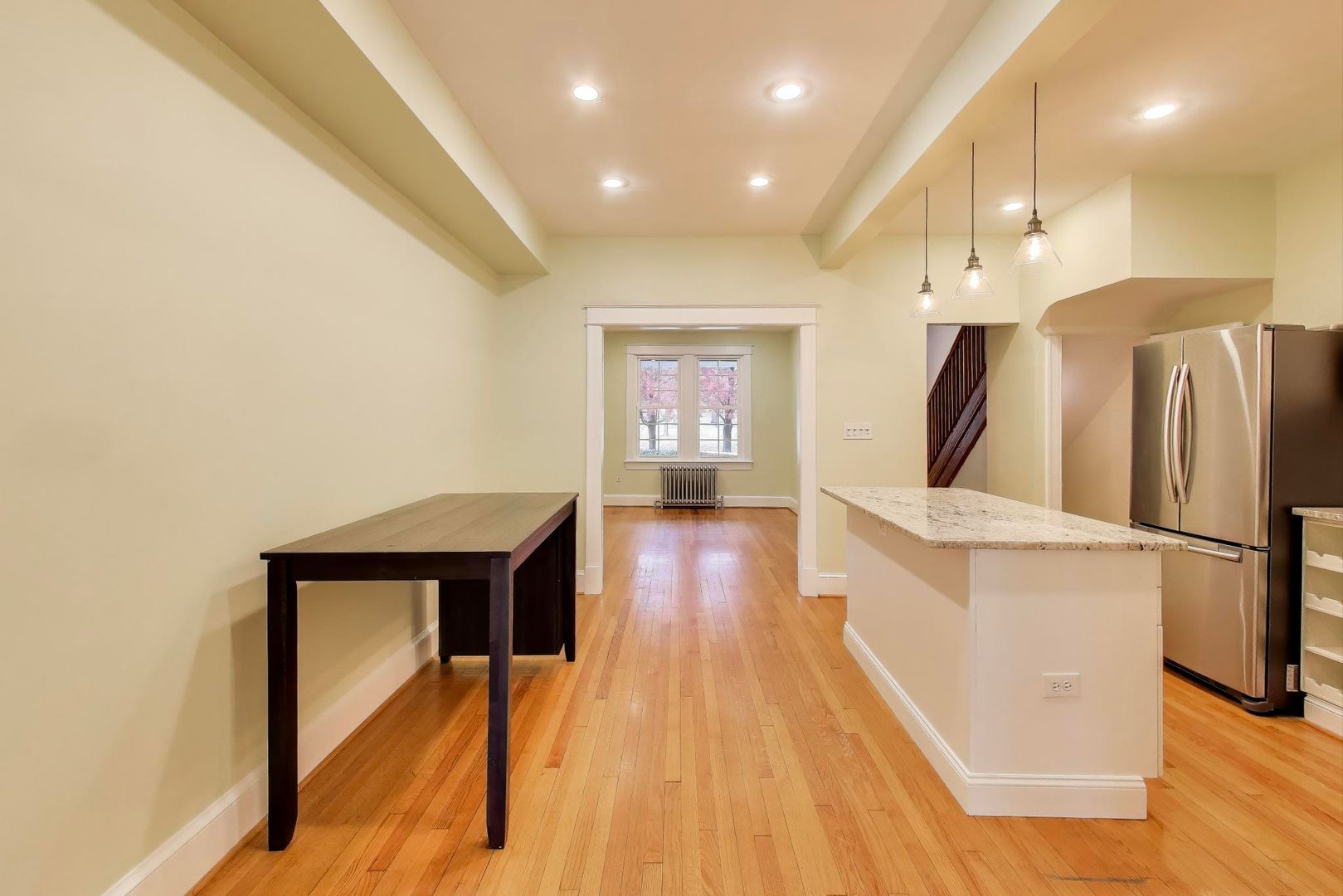 UPDATED 4 BED + 2.5 Bath ROW HOME – In PETWORTH — FRESH PAINT, UPDATED KITCHEN & BATHROOMS & NEW WINDOWS, NEW DECK – Come see BEAUTIFUL renovation over three levels, retaining classic features and charm but with modern luxury finishes. Original hardwood throughout with restored feature staircase in Signature DC Woodman style TH. Enjoy the Gourmet kitchen with beautiful Tile, Center Island with light granite countertops and stainless steel appliances . Finished basement [ can be a bedroom ] Kitchen opens to a LARGE NEW DECK & fenced yard w/ rear gravel parking pad. – covered front porch offers expansive views to the north. – Located in PETWORTH close to many shops and dining options. — Call us to schedule a showing…..